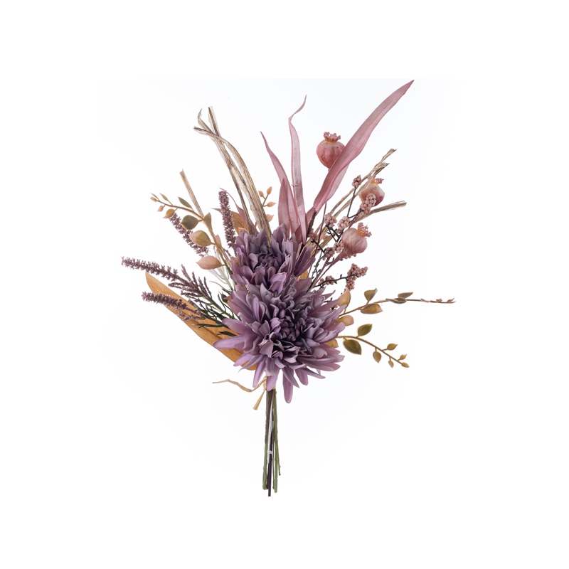 The beauty of the PL24040 is further enhanced by the inclusion of poppy fruits, their vibrant colors and unique shapes standing in stark contrast to the chrysanthemums. These fruits, with their rich, earthy tones, bring a touch of whimsy and playfulness to the arrangement, creating a visual symphony that is both captivating and soothing. The foam branches and other grass accessories serve as the perfect backdrop, their delicate forms and natural textures adding an element of rustic charm to the bouquet.