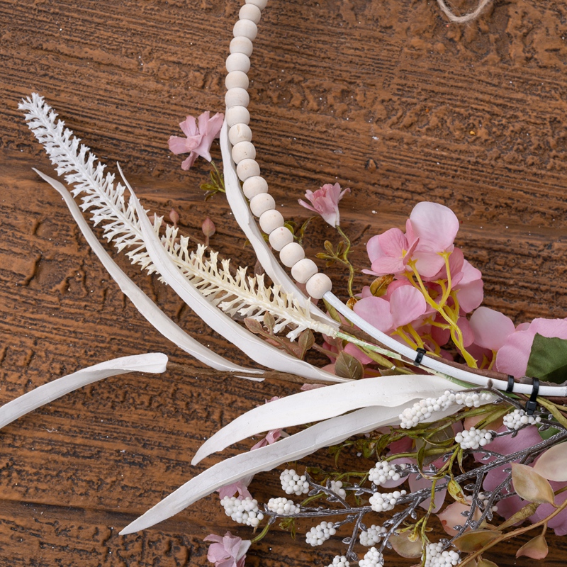 The inclusion of foam branches, sage, iron rings, wood beads, and other grass accessories further enhances the half ring's aesthetic appeal. These elements add depth and texture, creating a visual tapestry that is as complex as it is beautiful. The foam branches provide a foundational structure that supports the arrangement, while the sage adds a subtle hint of earthiness that complements the floral elements. The iron rings and wood beads, with their metallic gloss and organic shapes, create a visual balance that ties the entire design together.