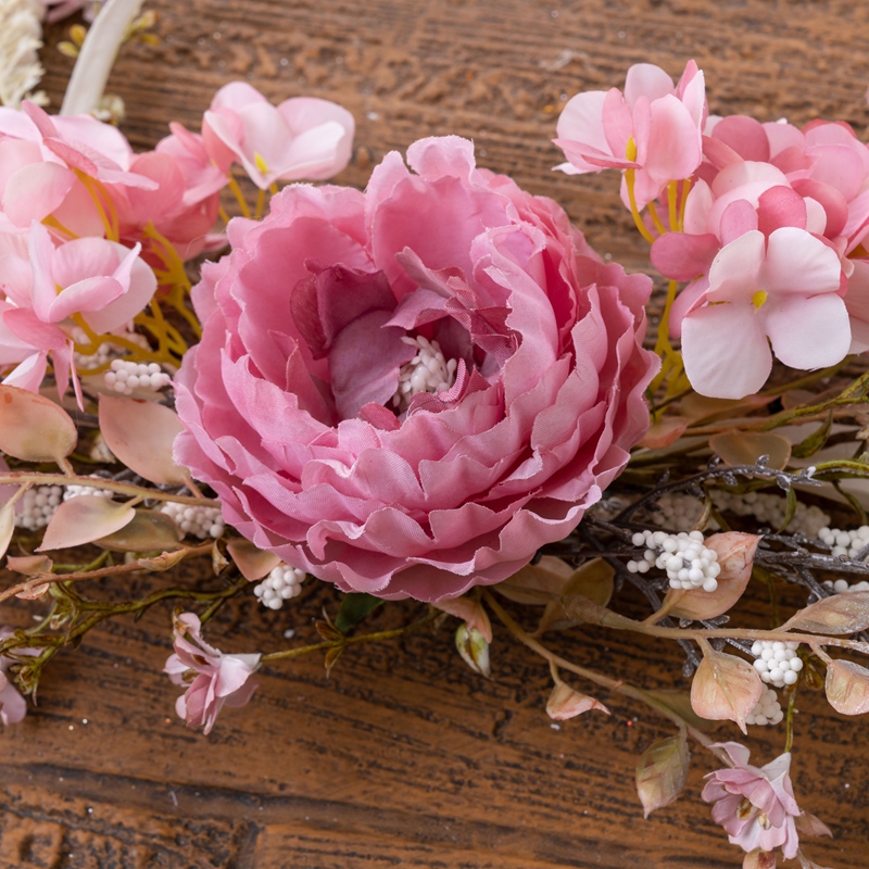 The overall design of the PL24052 is both striking and harmonious. With an outer ring diameter of 48cm and an inner ring diameter of 28cm, this half ring creates a visual frame that is both expansive and intimate. The height of the peony head, reaching a graceful 5cm, and its flower head diameter of 10cm, contribute to a focal point that is impossible to ignore. The peony, known for its lush blooms and symbolic meaning of prosperity and romance, serves as the centerpiece of this arrangement, its petals meticulously crafted to replicate the soft texture and vibrant hues of the real flower.