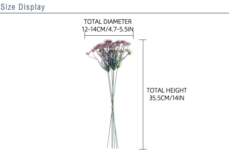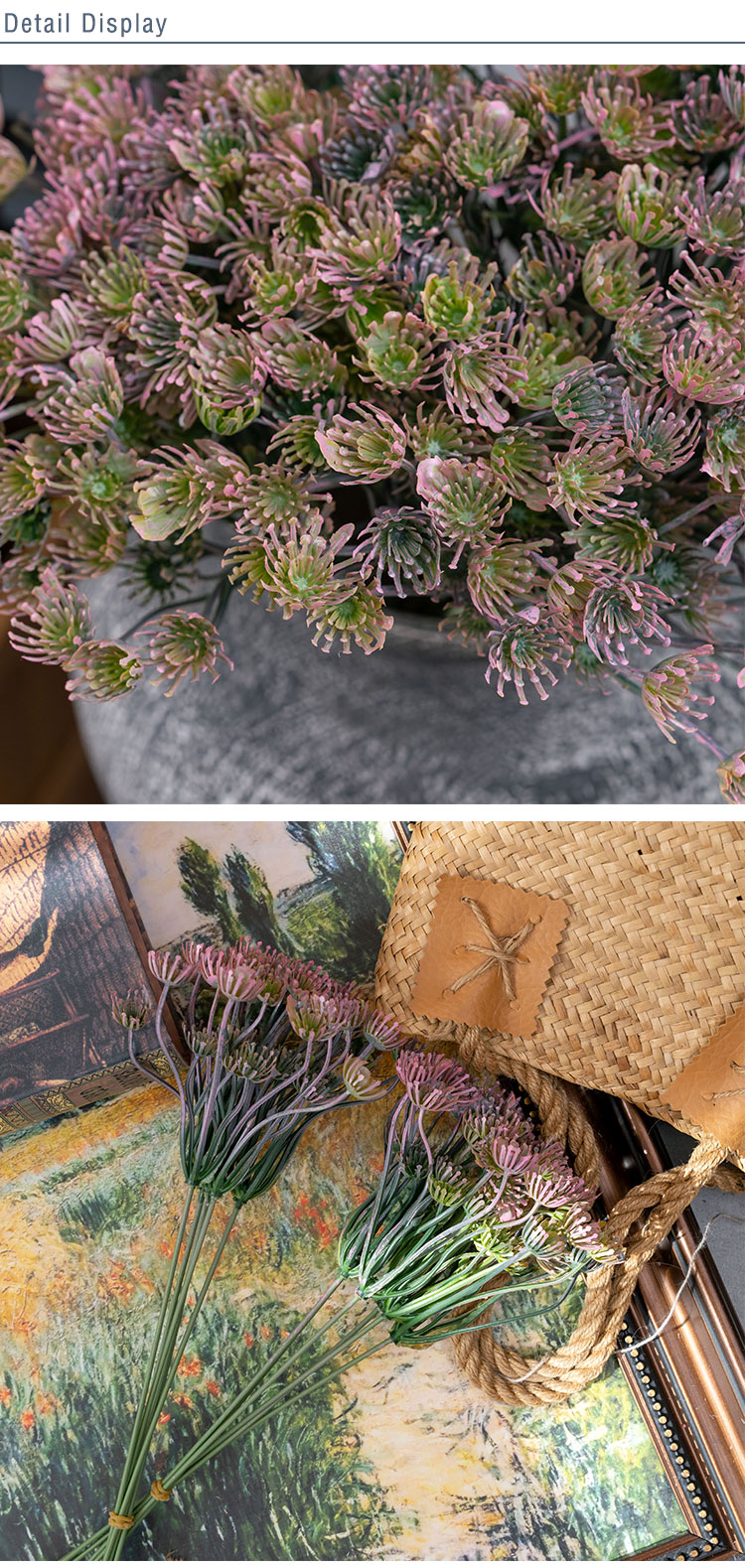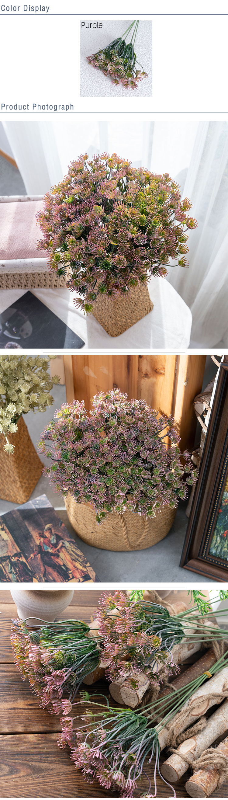 If you're looking for a decorative piece that brings a touch of uniqueness and elegance to any space, the Nine - pointed Claw Grass, item number YC1112, from CALLAFLORAL is an excellent choice. This exquisite decoration is a perfect combination of careful craftsmanship, high - quality materials, and versatile design, making it a standout option in the world of decorative items.​The materials used in the making of the Nine - pointed Claw Grass are Plastic and wire, which work together to create a durable and flexible decoration. The plastic ensures that the grass maintains its shape and color over time, even with regular use and exposure to different environments. It also provides a smooth and realistic texture, making the grass look almost like the real thing. The wire, on the other hand, adds flexibility to the stems, allowing you to bend and arrange them according to your own creative ideas. This flexibility gives you the freedom to create various looks, whether you want a more natural, wild arrangement or a neat and structured one.​ In terms of size, the Nine - pointed Claw Grass has an overall height of 35.5cm. This size is ideal for a wide range of display options. It can be used as a charming addition to a floral arrangement, placed in a small vase on a table or shelf, or even used to decorate a gift box. Despite its substantial appearance, each bunch weighs only 35.8g, which makes it lightweight and easy to handle. You can move it around effortlessly to find the perfect spot, and it won't add unnecessary weight to any surface it's placed on.​ The specification of the Nine - pointed Claw Grass is quite appealing. The price is for 1 bunch, and each bunch consists of 6 individual stems. This means that with just one purchase, you get a full and lush display. The 6 stems can be arranged in different ways to create a sense of fullness and volume, making the decoration look more abundant and attractive. Whether you use it alone or combine it with other decorative items, this bunch of Nine - pointed Claw Grass is sure to make a statement.​ CALLAFLORAL pays great attention to the packaging of its products to ensure they arrive in perfect condition. The Inner Box Size for the Nine - pointed Claw Grass is 80X30X15cm, and each box can hold 64 pcs. This packaging is not only designed to protect the grass during transportation but also makes it convenient for storage and display, especially for retailers. The sturdy box prevents the grass from being damaged, ensuring that every customer receives a product that is in pristine condition.​ When it comes to payment, CALLAFLORAL offers a wide range of options to cater to customers from all over the world. You can choose from L/C, T/T, West Union, Money Gram, PayPal, and many more. This flexibility in payment methods makes the purchasing process smooth and hassle - free, no matter where you are or what your business model is. Whether you're a individual looking to add a touch of elegance to your home or a retailer wanting to stock high - quality decorations, you can easily complete your purchase.​ The Nine - pointed Claw Grass is highly versatile and can be used in a variety of occasions and settings. In a home, it can be placed in the living room, bedroom, or even the bathroom to add a touch of nature and beauty. In commercial places such as hotels, hospitals, shopping malls, and supermarkets, it can enhance the overall atmosphere, making the space more inviting for customers and visitors.​It's also a great choice for various festivals and special events. On Valentine's Day, it can add a romantic touch to the decorations. During Carnival, it can contribute to the lively and festive mood.For Women's Day, Labor Day, Mother's Day, Children's Day, and Father's Day, it can help create a warm and joyful atmosphere. It's also suitable for holidays like Halloween, Thanksgiving, Christmas, New Year's Day, Adult's Day, and Easter, adding a unique and charming element to the celebrations. Additionally, it can be used as a prop in photography, exhibitions, and halls, adding a special touch to the visual presentation.